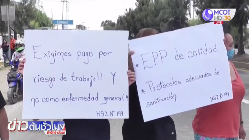 เม็กซิโก 14 พ.ค. – พยาบาลหลายสิบคนรวมตัวปิดกั้นถนนในกรุงเม็กซิโก ซิตี้ เรียกร้องรัฐบาลเร่งจัดหาอุปกรณ์ป้องกันการแพร่ระบาดของโรคโควิด-19 ให้กับบุคลากรทางการแพทย์ในเม็กซิโก