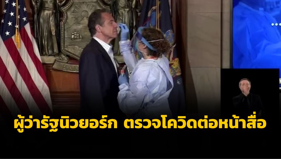 นิวยอร์ก 18 พ.ค. – นายแอนดรูว์ คัวโม ผู้ว่าการรัฐนิวยอร์กของสหรัฐ รับการตรวจหาไวรัสโคโรนา 2019 ต่อหน้าสาธารณะ ระหว่างการแถลงข่าวในวันอาทิตย์ขณะพยายามที่จะชักชวนให้ผู้คนเข้ารับการตรวจให้มากขึ้น