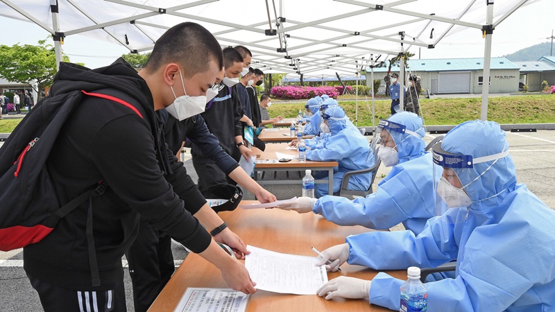 โซล 18 พ.ค. – กระทรวงกลาโหมเกาหลีใต้เปิดเผยว่า กองทัพเกาหลีใต้เริ่มการตรวจทหารใหม่ทั้งหมด เพื่อตรวจหาผู้ติดเชื้อไวรัสโคโรนา 2019 หรือโควิด-19 โดยเป็นมาตรการป้องกันไม่ให้ไวรัสเข้าสู่ค่ายทหาร เจ้าหน้าที่วางแผนจะตรวจหาเชื้อโควิด-19 จากทหารใหม่สัปดาห์ละ 6,300 นายตลอดช่วงสองเดือนนับจากนี้