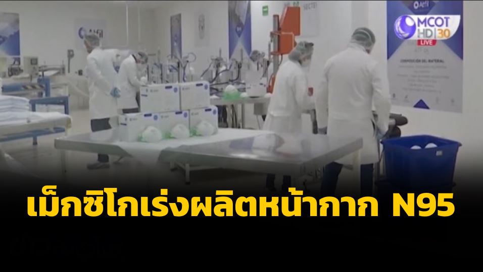 เม็กซิโก 22 พ.ค. – เม็กซิโกเปิดโรงงานผลิตหน้ากาก N95 จัดส่งให้บุคลากรทางการแพทย์ ตั้งเป้าผลิตหน้ากากให้ได้วันละ 40,000 ชิ้น เพื่อให้เพียงพอต่อความต้องการ