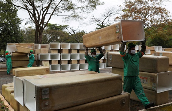 บราซิเลีย 31 พ.ค. – กระทรวงสาธารณสุขบราซิลรายงานว่า บราซิลพบผู้ติดเชื้อไวรัสโคโรนา สายพันธุ์ใหม่ รายใหม่ 33,274 ราย ซึ่งเป็นตัวเลขที่สูงเป็นประวัติการณ์ ในขณะที่ยอดผู้เสียชีวิตสะสมก็แซงหน้าฝรั่งเศสไปแล้ว