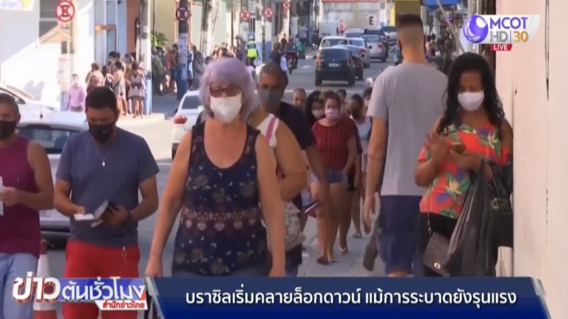 บางเมืองของบราซิลเริ่มผ่อนปรนมาตรการป้องกันโควิด-19 แล้ว แม้ว่าสถานการณ์การระบาดจะยังคงรุนแรงอยู่ ที่เมืองมานาอุส คนเริ่มกลับไปทำงานตามร้านขายของต่างๆ ขณะที่คนขายของตามข้างทางได้รับอนุญาตให้ขายได้เช่นกัน แต่ต้องปฏิบัติตามมาตรการป้องกันอย่างเคร่งครัด ผู้ขายต้องสวมหน้ากากอนามัยตลอดเวลา มีเจลแอลกอฮอล์ และอนุญาตให้ลูกค้าเข้าร้านได้ในจำนวนจำกัด เพื่อเว้นระยะห่างทางสังคม เมื่อวานนี้บราซิลมีผู้ติดเชื้อรายใหม่ 11,598 คน และมีผู้เสียชีวิต 623 คน ยอดผู้ติดเชื้อสะสมกว่า 526,000 คน สูงเป็นอันดับ 2 ของโลก รองจากสหรัฐ และยอดผู้เสียชีวิตเกือบ 30,000 คน.-สำนักข่าวไทย