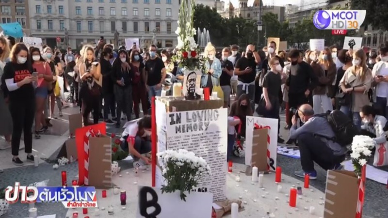 ที่เมืองบาร์เซโลนา เมืองใหญ่อันดับ 2 ของสเปน ผู้คนกว่า 1,000 คน รวมตัวที่จัตุรัสกลางเมือง ร่วมจุดเทียนไว้อาลัยและประท้วงการเสียชีวิตของนายจอร์จ ฟลอยด์ ชายผิวสี จากการกระทำเกินกว่าเหตุของตำรวจสหรัฐ ผู้ชุมนุมคนหนึ่งกล่าวแสดงความหวังว่าเหตุการณ์น่าสลดครั้งนี้จะส่งผลให้ประชาชนลุกฮือขึ้นมาเรียกร้องความเป็นธรรมและจัดการกับผู้ที่ใช้อำนาจในทางมิชอบ กลุ่มผู้ชุมนุมยังยืนสงบนิ่งเป็นเวลา 8 นาที เพื่อไว้อาลัยให้กับนายฟลอยด์
