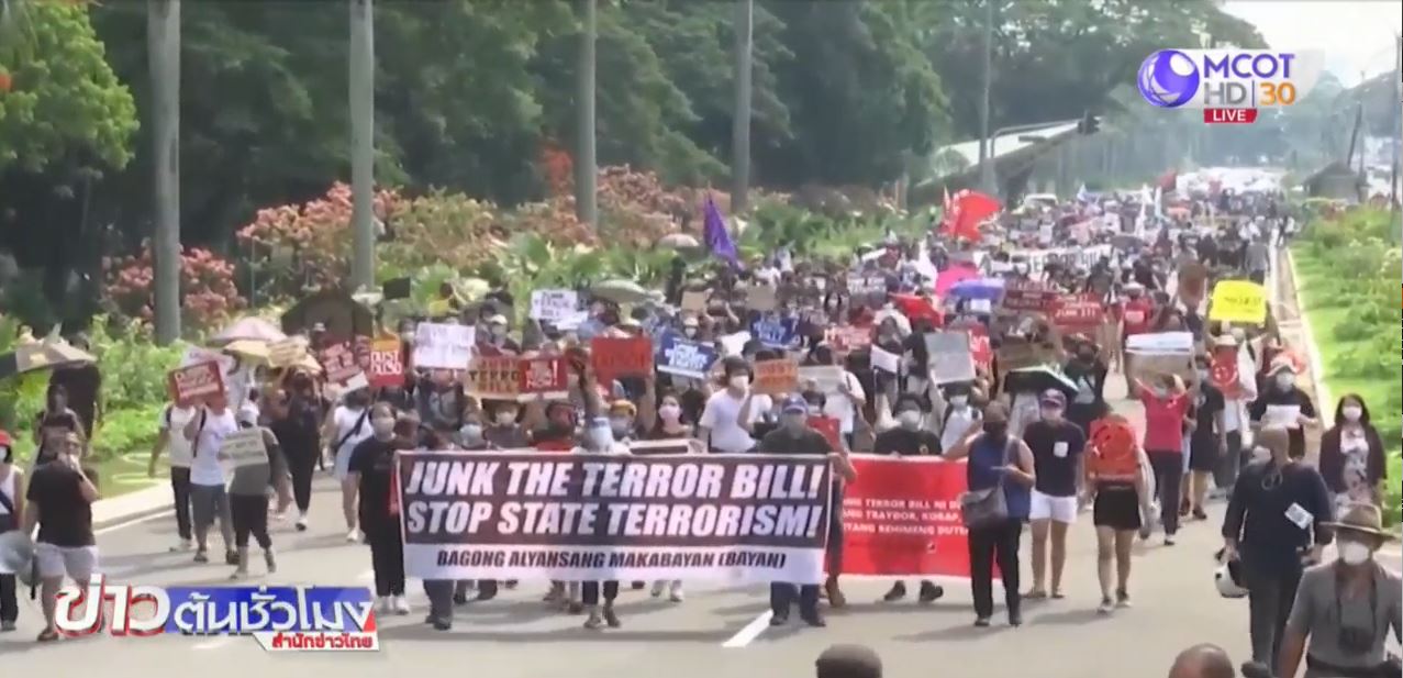 ฟิลิปปินส์ 5 มิ.ย. -กลุ่มสิทธิมนุษยชนในฟิลิปปินส์ประณามกฎหมายต่อต้านการก่อการร้ายฉบับใหม่ที่เพิ่มอำนาจให้เจ้าหน้าที่สามารถควบคุมตัวผู้ต้องสงสัยได้นานถึง 24 วัน โดยที่ยังไม่มีการออกหมายจับ จากเดิมคุมตัวได้เพียง 3 วันเท่านั้น