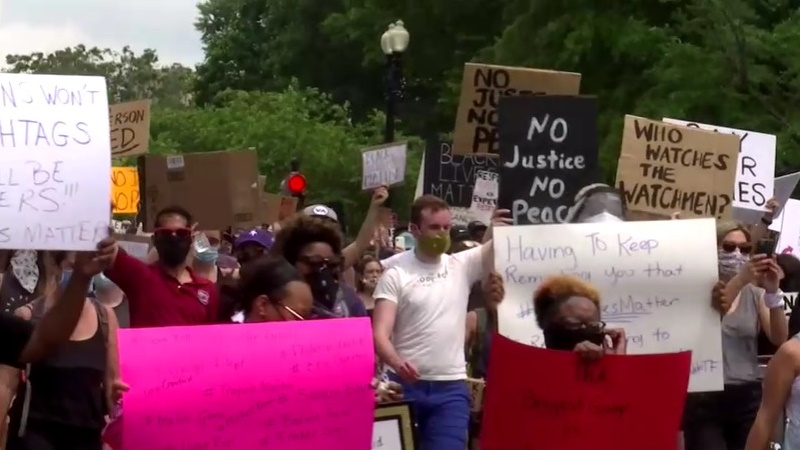 วอชิงตัน 8 มิ.ย. – การประท้วงต่อต้านการเหยียดเชื้อชาติจากกรณีชายผิวดำเสียชีวิตเพราะถูกตำรวจควบคุมตัว ยังคงดำเนินต่อไปทั่วสหรัฐ