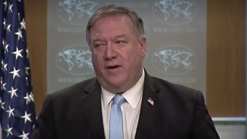 นายพอมเพโอแถลงว่า นายโบลตันกำลังแพร่กระจายคำโกหก ความจริงครึ่งเดียวที่ถูกประโคม และการหลอกลวงล้วน ๆ เป็นเรื่องน่าเศร้าและอันตรายที่บทบาทสาธารณะสุดท้ายของนายโบลตัน คือผู้ทรยศที่ทำลายสหรัฐอเมริกาด้วยการละเมิดความสัตย์ต่อประชาชน ขอบอกมิตรทั่วโลกว่า สหรัฐอเมริกาของประธานาธิบดีทรัมป์คือพลังที่ดีของโลก อย่างไรก็ดี เขายอมรับว่า ยังไม่ได้อ่านหนังสือเรื่อง The Room Where It Happened ของนายโบลตันที่รัฐบาลสหรัฐหาทางขัดขวางไม่ให้เผยแพร่