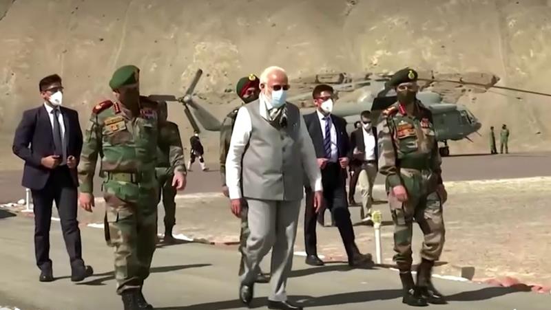 สำนักข่าวเอเอ็นไอของอินเดียเผยแพร่ภาพถ่ายของนายโมดีลงพื้นที่ไปพบกับกองทหารอินเดีย ซึ่งประจำการอยู่ที่เมืองนิมูในเขตลาดักห์ ทางการอินเดียระบุว่า นายโมดีเดินทางไปยังพื้นที่ดังกล่าวพร้อมด้วยพลเอกบิปิน ราวัต ประธานเสนาธิการกองทัพอินเดีย และพลเอกมาโนช มูกัน นราเวน ผู้บัญชาการกองทัพบกอินเดีย