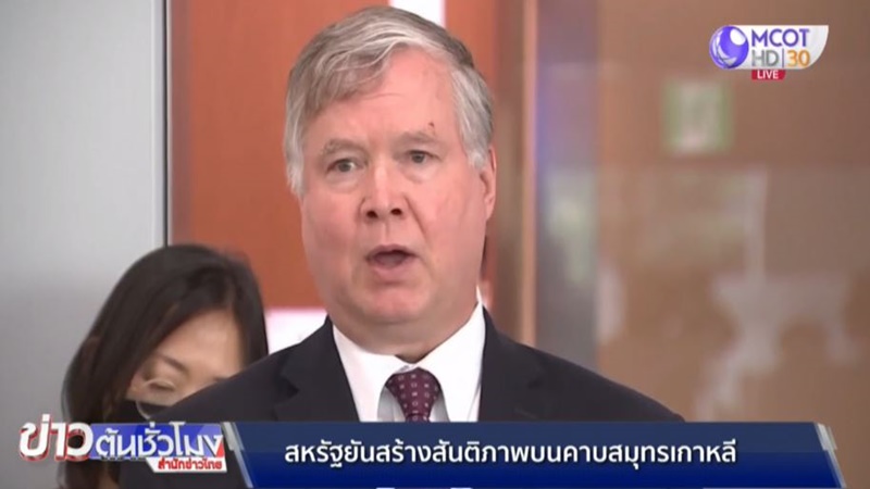 สหรัฐ 8 ก.ค. – ทูตสหรัฐด้านเจรจาปลดอาวุธนิวเคลียร์กับเกาหลีเหนือ เผยวิสัยทัศน์ของตนคือการสร้างสันติภาพที่ยั่งยืน และปลดอาวุธนิวเคลียร์บนคาบสมุทรเกาหลี ย้ำไม่ได้ใส่ใจกับคำพูดของ รมต.ช่วยต่างประเทศเกาหลีเหนือที่ระบุว่าเกาหลีเหนือไม่มีทางเจรจานิวเคลียร์รอบใหม่กับสหรัฐ