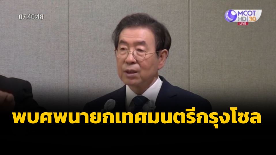 เกาหลีใต้ 10 ก.ค. – นายปัก วอนซุน นายกเทศมนตรีกรุงโซล นักการเมืองอนาคตไกล ตัวเก็งชิงตำแหน่งประธานาธิบดีเกาหลีใต้ พบเป็นศพอยู่บนภูเขาใกล้บ้านพัก หลังหายตัวไปในช่วงเย็นวานนี้ พร้อมทิ้งข้อความคล้ายคำสั่งเสียกับบุตรสาว