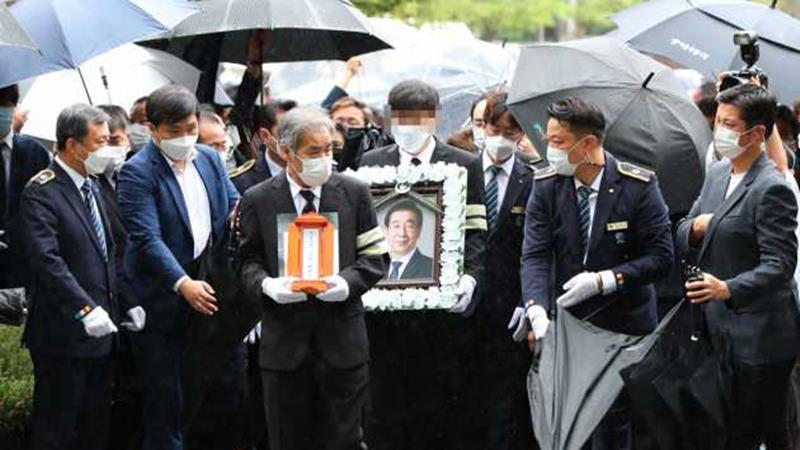 โซล 13 ก.ค. – บรรดาเพื่อน ครอบครัว และผู้สนับสนุนรวมตัวกันท่ามกลางสายฝน เพื่อกล่าวคำอำลาครั้งสุดท้ายต่อนายพัก วอนซุน นายกเทศมนตรีกรุงโซล ซึ่งเป็นนักกฎหมายด้านสิทธิมนุษยชนและนักเคลื่อนไหวคนสำคัญที่ถูกยกเป็นตัวเก็งในการเลือกตั้งชิงตำแหน่งประธานาธิบดีครั้งต่อไป พิธีศพมีการถ่ายทอดสดออนไลน์ เพื่อป้องกันการแพร่กระจายของโรคติดเชื้อไวรัสโคโรนา 2019