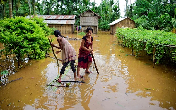 น้ำจากแม่น้ำพรหมบุตร ซึ่งไหลผ่านทิเบต อินเดีย และบังกลาเทศ ไหลเอ่อล้นตลิ่งท่วมพืชผลจนได้รับความเสียหายและทำให้เกิดดินถล่ม นอกจากนั้น ทำให้คนต้องอพยพจากบ้านเรือนหลายล้านคน ประชาชนกว่า 2.75 ล้านคนในรัฐอัสสัม ต้องพลัดถิ่นเนื่องจากน้ำท่วม 3 ระลอก ตั้งแต่ช่วงปลายเดือนพฤษภาคม ที่ทำให้มีผู้เสียชีวิต 79 ราย และมีรายงานพบผู้เสียชีวิตเพิ่มเติมอีก 2 รายในช่วงค่ำที่ผ่านมา เจ้าหน้าที่กล่าวว่า สถานการณ์อุทกภัยยังคงอยู่ในภาวะวิกฤติ เนื่องจากระดับน้ำในแม่น้ำเกือบทุกสายสูงกว่าระดับที่เป็นอันตราย ในประเทศเนปาล เจ้าหน้าที่ขอให้ประชาชนที่อาศัยอยู่ในเขตที่ราบในภาคใต้ ระมัดระวัง เนื่องจากจะเกิดฝนตกหนักต่อเนื่อง เจ้าหน้าที่ตำรวจกล่าวว่า ประชาชนราว 110 เสียชีวิตและอีก 100 คน ได้รับบาดเจ็บจากการที่ดินถล่มและน้ำท่วมฉับพลันพัดพาบ้านเรือนของพวกเขาไปกับสายน้ำ นอกจากนั้น ยังสร้างความเสียหายให้กับถนนหลายสายและสะพานหลายแห่ง ประชาชนหลายร้อยคนต้องพลัดถิ่นฐานในเขต 26 อำเภอจากจำนวน 77 อำเภอในประเทศ เจ้าหน้าที่เนปาลกล่าวว่า ยอดผู้เสียชีวิตน่าจะเพิ่มขึ้นเนื่องจากยังมีผู้สูญหายอีก 48 ราย.-สำนักข่าวไทย