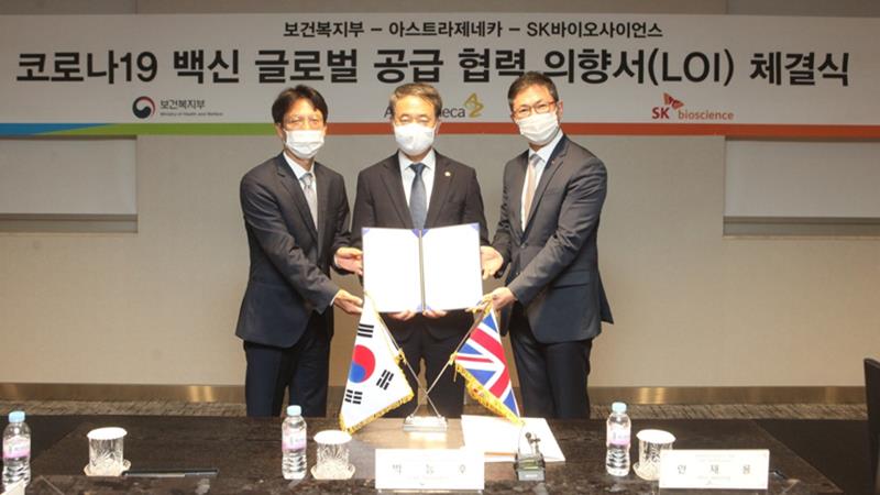 เอสเคไบโอไซเอินซ์เผยวันนี้ว่า จะเริ่มผลิตวัคซีน AZD1222 ที่แอสตราเซนเนกา บริษัทยาอังกฤษพัฒนาร่วมกับมหาวิทยาลัยออกซ์ฟอร์ดและมีข้อมูลเมื่อวานนี้ว่า ผลการทดลองทางคลินิกขั้นต้นพบว่าอาสาสมัครมีภูมิต้านทานโรคโควิด-19 สัญญาการผลิตจะเริ่มในเดือนนี้ไปจนถึงต้นปีหน้า และอาจต่ออายุสัญญาขึ้นอยู่กับความสำเร็จในการพัฒนาวัคซีน กระทรวงสาธารณสุขเกาหลีใต้เป็นผู้จัดให้สองบริษัทได้คุยกัน และจะเริ่มหารือกับแอสตราเซนเนกาเรื่องนำมาวัคซีนมาใช้ในเกาหลีใต้