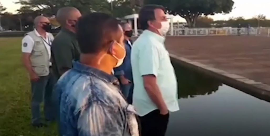 ประธานาธิบดีฌาอีร์ โบลโซนารู ผู้นำบราซิล ออกมาทักทายกลุ่มผู้สนับสนุนที่บริเวณหน้าบ้านพักในกรุงบราซิเลีย หลังผลการตรวจเชื้อโควิด-19 ครั้งที่ 3 ปรากฏว่านายโบลโซนารูยังมีเชื้ออยู่ ส่งผลให้นายโบลโซนารู วัย 67 ปี ยังต้องกักตัวอยู่ในบ้านพัก โดยใช้วิธีการประชุมทางไกลผ่านจอภาพแทน