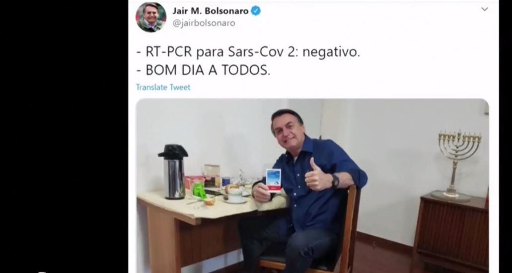บราซิล 26 ก.ค. – ประธานาธิบดีฌาอีร์ โบลโซนารู ผู้นำบราซิล ทวีตเมื่อวานนี้ว่า ผลการตรวจหาเชื้อโควิด-19 ครั้งล่าสุด ปรากฏผลลบ