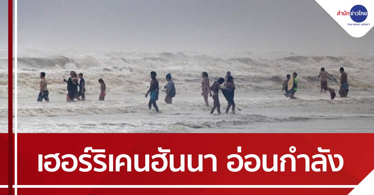 ศูนย์เฮอร์ริเคนแห่งชาติของสหรัฐ ได้ปรับลดระดัยความรุนแรงของฮันนา จากพายุระดับ 1 กลายเป็นพายุโซนร้อนเมื่อเวลา 13.00 น. ตามเวลาในประเทศไทย แต่ยังคงมีความแรงของกระแสลมอยู่ที่ 115 กิโลเมตรต่อชั่วโมง เจ้าหน้าที่ท้องถิ่น เตรียมพร้อมสำหรับรับมือกับเหตุที่จะเกิดขึ้นจากพายุ ในขณะที่สำนักงานกาชาติสหรัฐเปิดที่พักพิงชั่วคราว 3 แห่ง ในรัฐเท็กซัสเพื่อเป็นการเตรียมการ พิพิธภัณฑ์สัตว์น้ำ เท็กซัสสเตท อควาเรียม กล่าวว่า จะปิดให้บริการเนื่องจากได้รับความเสียหายจากพายุ เจ้าหน้าที่อุตุนิยมวิทยาคาดหมายว่า ฮันนา จะเคลื่อนตัวไปทางใต้ของรัฐเท็กซัสในคืนวันเสาร์ตามเวลาท้องถิ่น มุ่งหน้าไปยังพื้นที่ตะวันออกเฉียงเหนือของเม็กซิโก ในขณะเดียวกัน เกิดพายุอีก 2 ลูก คือ เฮอร์ริเคน ดักลาส อยู่ในมหาสมุทรแปซิฟิก ที่บริเวณหมู่เกาะฮาวาย และพายุโซนร้อนกอนซาโล ในมหาสมุทรแอตแลนติก ใกล้กับหมู่เกาะวินด์เวิร์ด.-สำนักข่าวไทย