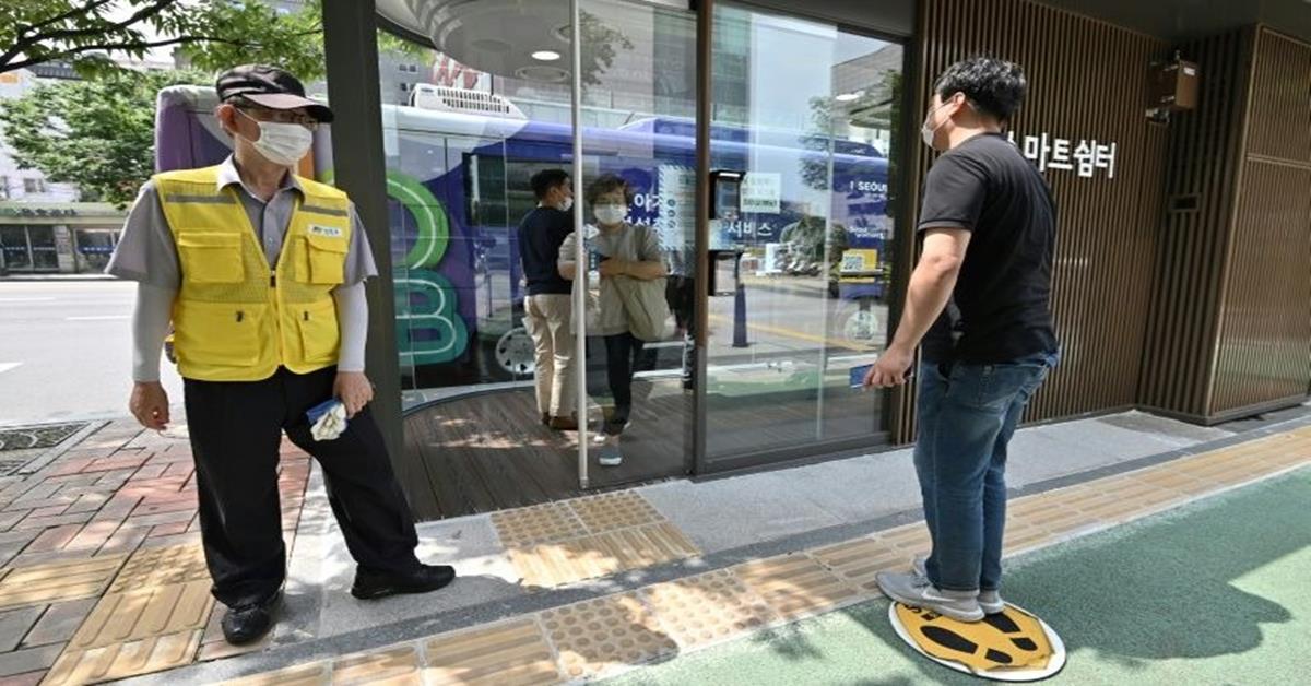 ป้ายรถเมล์ห้องกระจกนำร่องติดตั้งในพื้นที่ทางตะวันออกเฉียงเหนือของกรุงโซล 10 ป้าย ใช้งบประมาณก่อสร้างป้ายละ 100 ล้านวอน (ราว 2.63 ล้านบาท) สามารถกันแดดกันฝนและกันเชื้อไวรัสโคโรนา ผู้โดยสารต้องยืนหน้ากล้องตรวจวัดไข้อัตโนมัติ ประตูป้ายจะเลื่อนเปิดให้เมื่อมีอุณหภูมิไม่เกิน 37.5 องศาเซลเซียส และมีกล้องติดตั้งในระดับต่ำสำหรับเด็ก ข้างในห้องกระจกติดแอร์มีหลอดไฟอัลตราไวโอเลตหรือยูวี (UV) ฆ่าเชื้อโรค ผลิตภัณฑ์ฆ่าเชื้อสำหรับมือ และไวไฟฟรี มีจอแสดงผลประมาณการเวลารถเมล์มาถึงและภาพการจราจรด้านนอกป้องกันการตกรถ ผู้โดยสารต้องสวมหน้ากากอนามัยตลอดเวลาที่รอรถและต้องรักษาระยะห่างกันอย่างน้อย 1 เมตร