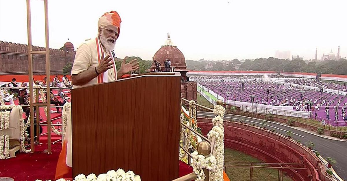 นายกรัฐมนตรีโมดีกล่าวสุนทรพจน์ต่อผู้เข้าร่วมพิธีที่ป้อมแดงในกรุงนิวเดลี ซึ่งถูกลดลงจำนวนลงกว่าครึ่งหนึ่งเหลือเพียง 4,000 คน และนั่งห่างกัน 2 เมตรในช่วงที่โรคติดเชื้อไวรัสโคโรนา 2019 หรือโควิด-19 ยังคงระบาด เขากล่าวถึงการเผชิญหน้ากับจีนและปากีสถานโดยไม่ระบุชื่อว่า ประเทศใดก็ตามที่เล็งอธิปไตยของอินเดีย จะถูกกองทัพอินเดียตอบโต้ด้วยท่าทีเดียวกัน อธิปไตยของอินเดียคือสิ่งสำคัญสูงสุด ทุกคนได้เห็นสิ่งที่อินเดียและกองทัพสามารถทำได้มาแล้วที่ลาดักห์ ซึ่งหมายถึงเหตุทหารอินเดียปะทะกับทหารจีนเมื่อวันที่ 15 มิถุนายนบริเวณพรมแดนเมืองลาดักห์ บนเทือกเขาหิมาลัย ครั้งนั้นทหารอินเดียเสียชีวิต 20 นาย ส่วนจีนยอมรับว่าสูญเสียทหารจำนวนหนึ่งแต่ไม่ยอมเปิดเผยจำนวน