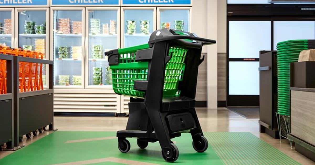 ซูเปอร์มาร์เก็ตแห่งนี้มีชื่อว่า แอมะซอนเฟรช (Amazon Fresh) ตั้งอยู่ในย่านวูดแลนด์ฮิลล์ส พื้นที่ร้าน 3,250 ตารางเมตร เป็นซูเปอร์มาร์เก็ตแห่งแรกจากทั้งหมด 7 แห่งที่แอมะซอนจะเปิดในรัฐแคลิฟอร์เนียและรัฐอิลลินอยส์ ใช้รถเข็นอัจฉริยะเรียกว่า แอมะซอนแดชคาร์ต (Amazon Dash Cart) มีหน้าจอให้ลูกค้าลงชื่อใช้งานด้วยคิวอาร์โค้ดในแอปพลิเคนแอมะซอน วางถุงลงในรถเข็นได้สูงสุด 2 ถุง สแกนบาร์โค้ดของสินค้าที่รถเข็น รอจนกว่าได้ยินดังปิ๊บจึงนำสินค้าลงถุง หากมีไฟเตือนสีส้มให้หยิบสินค้าขึ้นมาสแกนใหม่อีกครั้ง เมื่อได้สินค้าครบตามที่ต้องการ ไม่ต้องเข้าแถวรอจ่ายเงิน แต่เข็นรถผ่านเลนแดชคาร์ตโดยเฉพาะ นำรถเข็นไปคืน และจะได้รับอีเมลแจ้งใบเสร็จค่าสินค้าโดยอัตโนมัติ