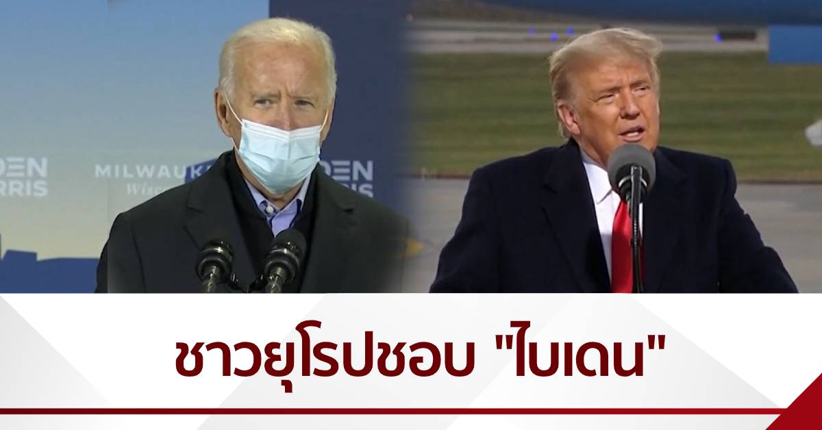 ยุโรป 31 ต.ค.-ผลสำรวจชาวยุโรปจาก 5 ประเทศ พบส่วนใหญ่ชื่นชอบนายโจ ไบเดน ตัวแทนพรรคเดโมแครตในการชิงชัยเก้าอี้ประธานาธิบดีสหรัฐฯ มากกว่าประธานาธิบดีโดนัลด์ ทรัมป์ ชาวเยอรมัน เลือก “ทรัมป์” เพียง 8% เท่านั้น