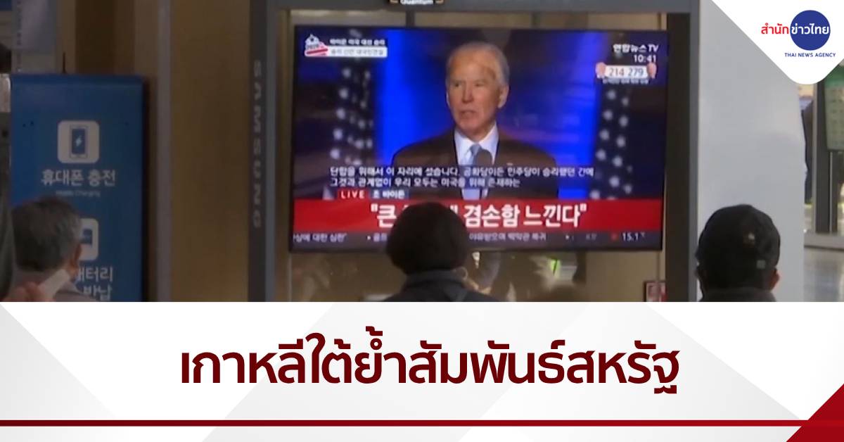 ประธานาธิบดีมูน แจอิน ของเกาหลีใต้ ทวิตข้อความแสดงความยินดีกับนายโจ ไบเดน และนางคามาลา แฮร์ริส ที่ชนะการเลือกตั้งประธานาธิบดีสหรัฐ และย้ำว่า สหรัฐกับเกาหลีใต้เป็นพันธมิตรกันอย่างเหนียวแน่น และความสัมพันธ์ระหว่างทั้งสองประเทศก็แข็งแกร่งดังหินผา เกาหลีใต้หวังอย่างยิ่งว่า จะร่วมมือกับผู้นำคนใหม่ของสหรัฐอย่างเต็มที่ สหรัฐมีฐานทัพอยู่ในเกาหลีใต้ และมีทหารสหรัฐประจำการอยู่ 28,500 นาย เพื่อช่วยเกาหลีใต้ปกป้องอธิปไตยไม่ให้ถูกใครละเมิด ส่วนชาวเกาหลีใต้ในกรุงโซลต่างพากัน กล่าวว่า ประธานาธิบดีโดนัลด์ ทรัมป์ แพ้ เพราะไม่มีประสบการณ์ทางการเมืองเหมือนนายไบเดน.-สำนักข่าวไทย