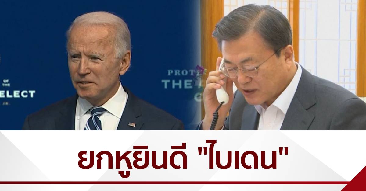 ประธานาธิบดีมุน แจ อิน ผู้นำเกาหลีใต้ ร่วมแสดงความยินดีทางโทรศัพท์กับนายโจ ไบเดน ผู้สมัครจากพรรคเดโมแครต หลังคว้าชัยชนะในการเลือกตั้งประธานาธิบดีสหรัฐ ระหว่างการสนทนา ทั้งนายมุน แจ อิน และนายไบเดน ต่างให้คำมั่นจะกระชับความร่วมมือระหว่างเกาหลีใต้กับสหรัฐให้แน่นแฟ้นยิ่งขึ้น รวมทั้งร่วมมือกันต่อสู้กับการแพร่ระบาดของโควิด-19