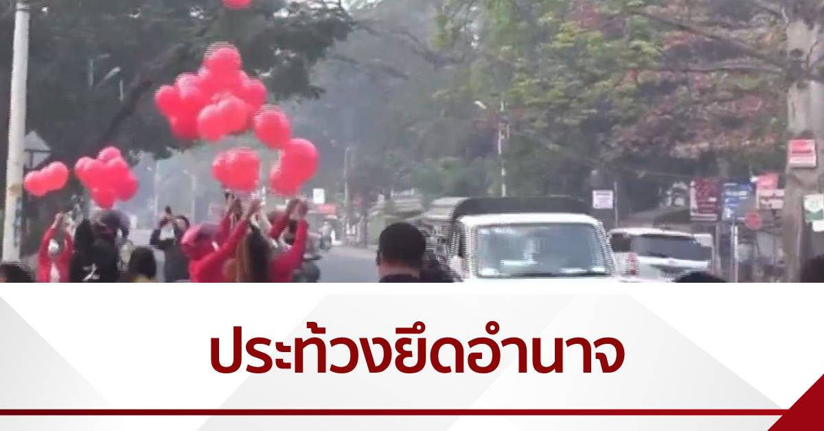 ขณะเดียวกันในกรุงเนปยีดอ ของเมียนมา วันนี้กลุ่มผู้ต่อต้านการยึดอำนาจและสนับสนุนพรรคเอ็นแอลดี พากันสวมเสื้อแดงออกมาปล่อยลูกโป่งสีแดงเพื่อแสดงการต่อต้านการยึดอำนาจเช่นกัน. – สำนักข่าวไทย