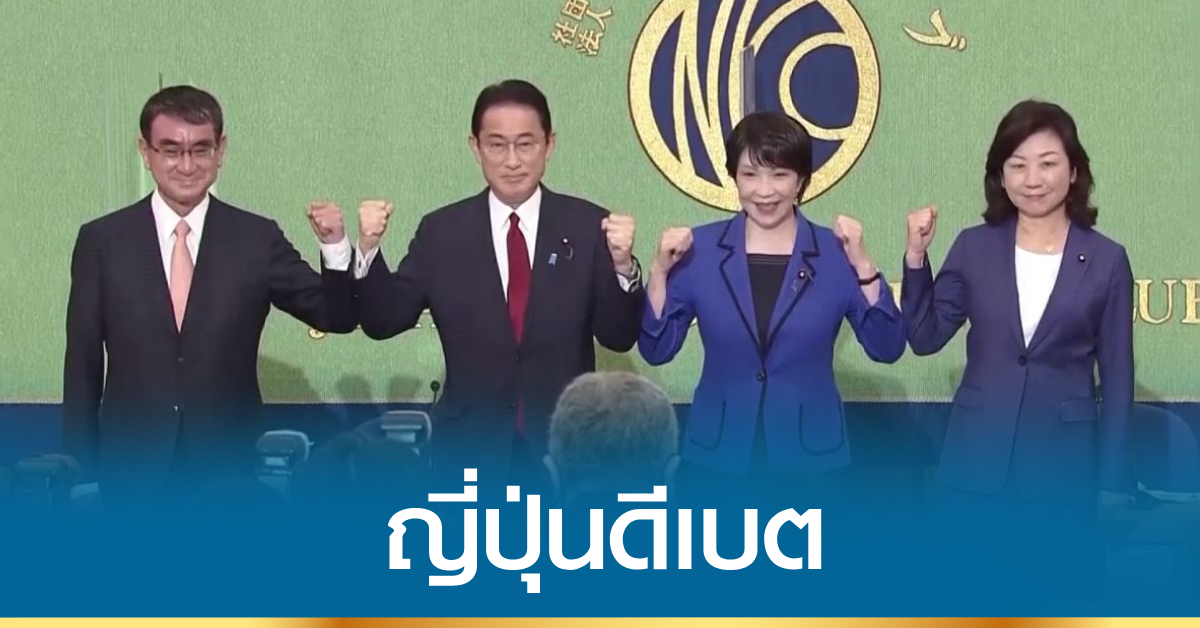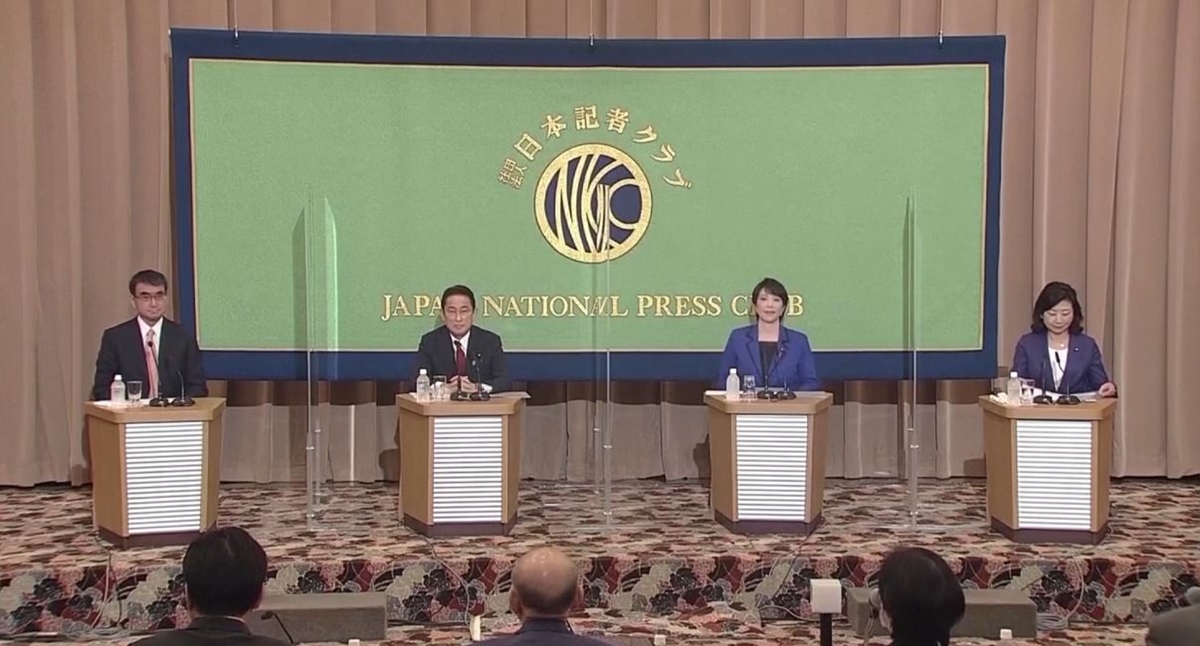 ญี่ปุ่น 19 ก.ย. – ผู้สมัครชิงตำแหน่งหัวหน้าพรรครัฐบาลญี่ปุ่น 4 คน ขึ้นเวทีดีเบตผ่านสื่อโทรทัศน์แสดงวิสัยทัศน์เรียกคะแนนเสียงจากสมาชิกพรรค ก่อนจะมีการเลือกตั้งในวันที่ 29 ก.ย.นี้