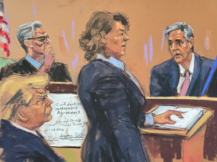วันที่ 30 พฤษภาคม ทรัมป์กลายเป็นประธานาธิบดีสหรัฐคนแรกที่ถูกตัดสินว่ามีความผิดในคดีอาญาข้อหาปลอมแปลงเอกสารทางธุรกิจทั้งหมด 34 กระทง กรณีให้ทนายจ่ายเงินปิดปากสตอร์มี แดเนียลส์ นักแสดงหนังผู้ใหญ่ ไม่ให้เปิดโปงช่วงก่อนเลือกตั้งปี 2016 ว่า มีสัมพันธ์สวาทกับเขา จากนั้นทรัมป์เมื่อได้ขึ้นเป็นประธานาธิบดีได้ทยอยคืนเงินในรูปของค่าธรรมเนียมทางกฎหมาย จึงถือว่ากระทำความผิดในขณะดำรงตำแหน่งประธานาธิบดี และผลของการกระทำเป็นการให้คุณให้โทษในการเลือกตั้งโดยอัยการตั้งสำนวนว่า ทรัมป์บิดเบือนจนมีผลต่อการตัดสินใจของผู้มีสิทธิ์เลือกตั้ง
