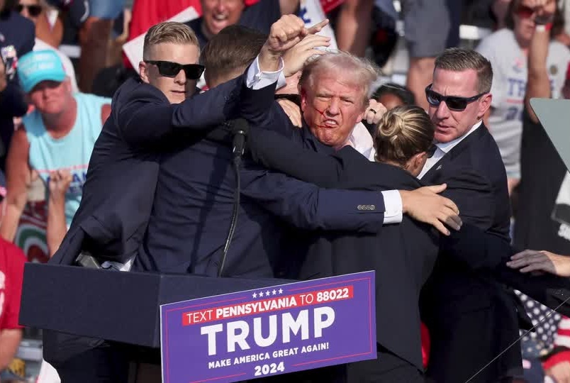 เกมพลิกครั้งที่ 2 เกิดขึ้นพร้อมกับความตกใจของคนทั้งโลก เมื่อมีคนพยายามลอบสังหารทรัมป์ขณะกำลังอยู่บนเวทีหาเสียงในเมืองบัตเลอร์ รัฐเพนซิลเวเนียเมื่อวันที่ 13 กรกฎาคม คนร้ายสาดกระสุนหลายนัด ทรัมป์รอดชีวิตอย่างหวุดหวิด ลูกกระสุนบางลูกเฉี่ยวถูกใบหน้า และนัดหนึ่งถูกหูขวาของเขา มีผู้ร่วมฟังการปราศรัยหาเสียงเสียชีวิต 1 คน บาดเจ็บอีก 2 คน