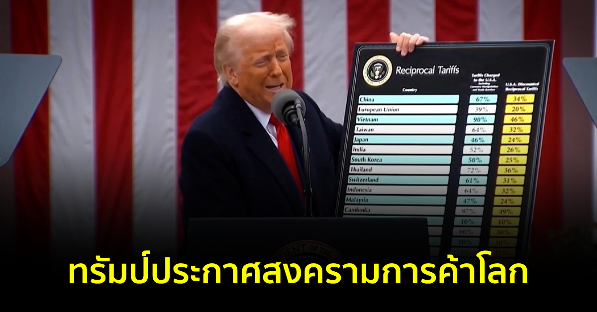 งานใหญ่ในทำเนียบขาว ที่หลายคนอาจมองเป็นพิธีฉลอง หรือน่าจะเป็นปราศรัยหาเสียง หรือเปรียบเหมือนเกมโชว์ ตัวเลขพารวย แผ่นรายชื่อบนเวที สำหรับนายโดนัลด์ ทรัมป์ ประธานาธิบดีสหรัฐ มันคือใบประกาศเอกราช ปลดแอกชาติ อุตสาหกรรมเกิดใหม่ ทวงคืนโชคชะตา พาชาติให้ร่ำรวยมั่งคั่งอีกครั้งไล่เรียงการคิดคำนวณ ตัวเลขที่ปรากฏออกมาคือ อาวุธที่จะเริ่มใช้กับรายประเทศคู่ค้า 9 มีนาคมนี้