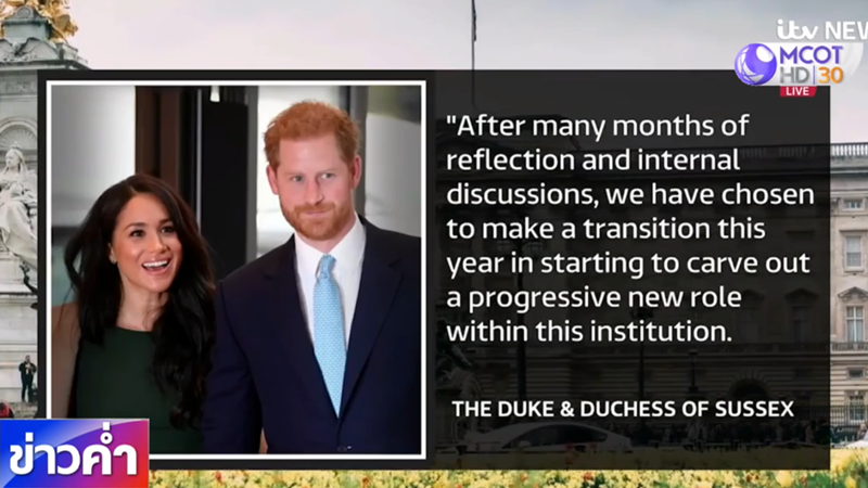 อังกฤษ 10 ม.ค. – สะเทือนราชวงศ์อังกฤษ หลังเจ้าชายแฮร์รี และดัชเชสเมแกน พระชายา ทรงประกาศลดบทบาทจากการเป็นสมาชิกระดับสูงของราชวงศ์วินด์เซอร์ เพื่อใช้ชีวิตในแบบฉบับของตน